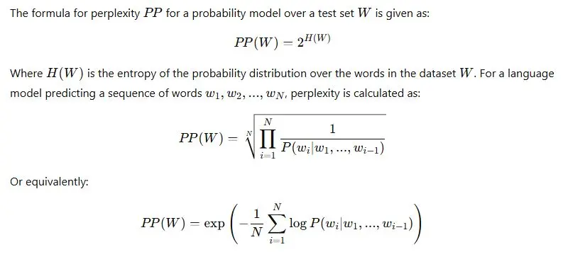 Perplexity, in its simplest form, measures how well a probability model predicts a sequence of words. The lower the perplexity, the better the model’s ability to predict text or language data. In other words, a lower perplexity score indicates a more accurate language model.